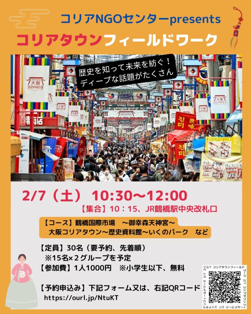 2026年2月7日(土)に鶴橋駅からコリアタウンまでのフィールドワークのイベントを開催します。通常は団体での実施ですが、個人で参加できる貴重な機会です。