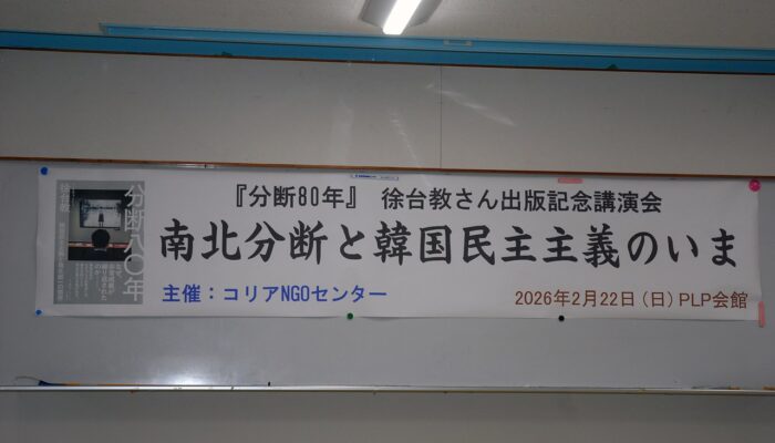 2026年2月22日(日)に『分断八〇年』徐台教さん出版記念講演会「南北分断と韓国民主主義のいま」が開催されました。
